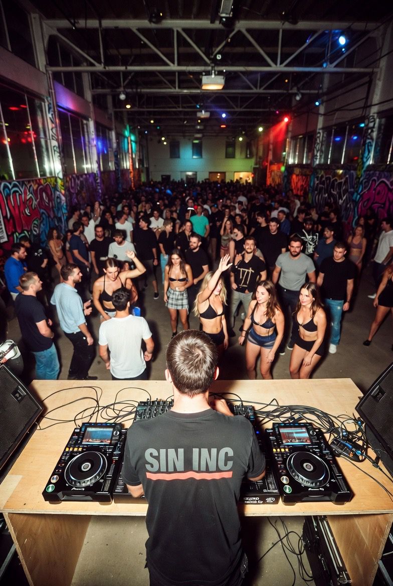 SIN INC. Was born in 2011 in the pulsating underground Music scene thriving in shadowy warehouses, bumping bass music. Bringing big crowds to desert Party’s There is a rebellion woven into every thread we produce!